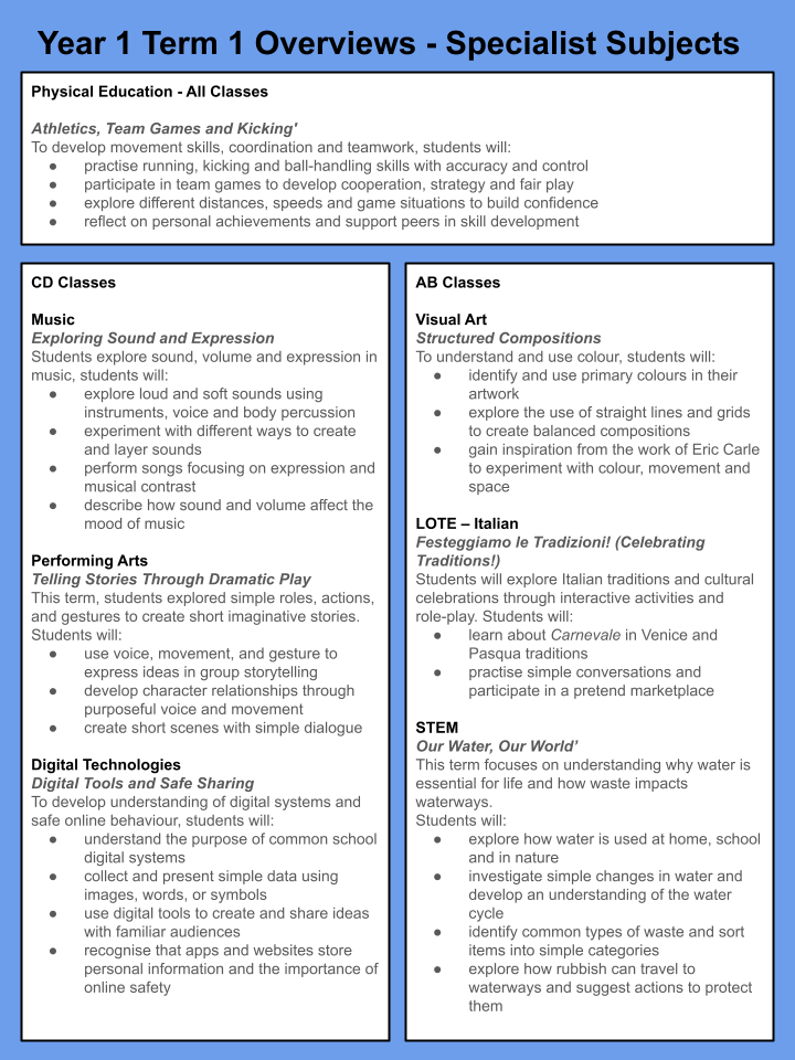 Year 1 Overview